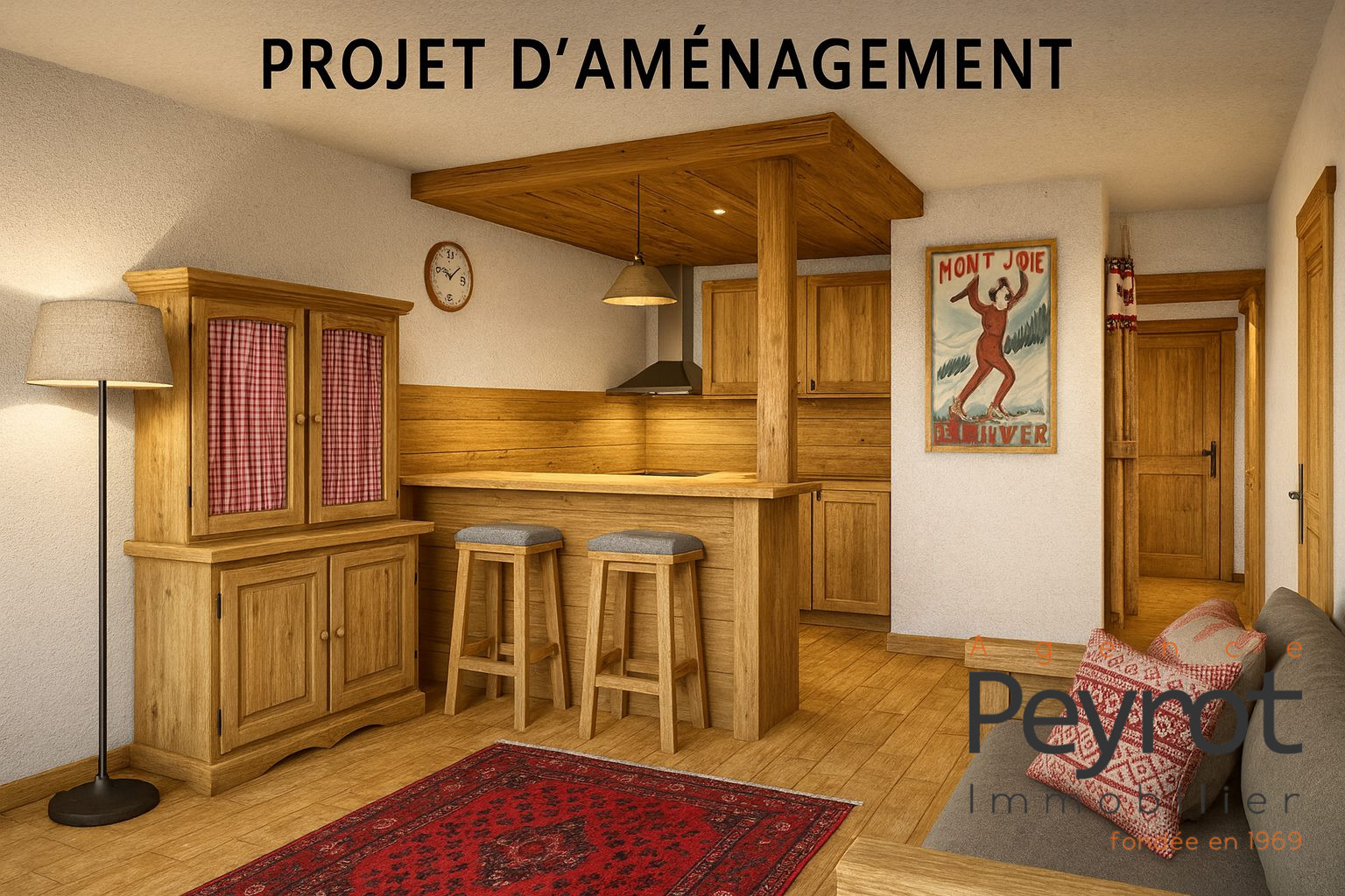 APPARTEMENT DE 26 M² composé d'un grand séjour cuisine donnant sur un balcon avec vue montagnes, d'une cabine à l'entrée,...